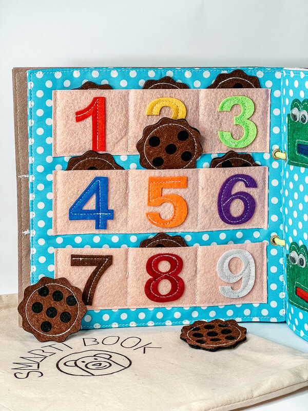 Kognitive Entwicklung: Das Spielen mit einem Quiet Book fördert das Verständnis von Ursache-Wirkungs-Zusammenhängen, die Erkennung von Farben, Formen, Zahlen und anderen Elementen und trägt so zur Entwicklung kognitiver Fähigkeiten bei.
