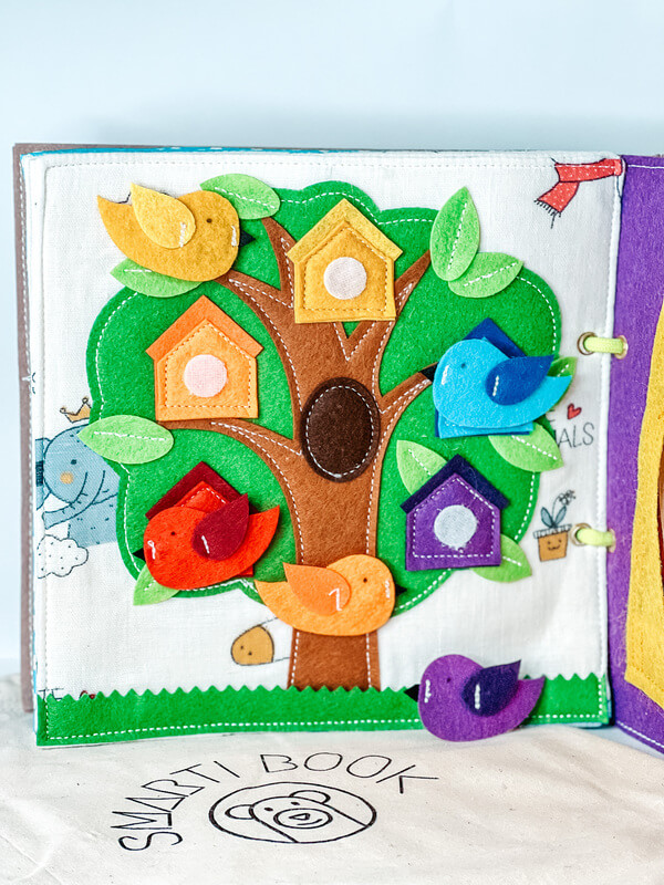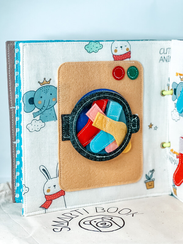 Warum eine ganze Tasche voller Spielzeug auf eine Reise mitnehmen, wenn ein Quiet Book alles in einem bietet? Jede Seite präsentiert eine neue Aktivität, die das Kind sowohl unterhält als auch bildet.