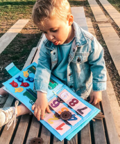 Es enthält 9 Aktivitätsseiten. Geeignet für Kinder ab 2 Jahren, da es verschiedene Aktivitäten bietet, die den Erwerb neuer Fähigkeiten und die kognitive Entwicklung fördern. Unter den Aktivitäten finden Sie Rätsel, verschiedene Denkaufgaben, Formensortierung, Farberkennung, Addition und Zählaktivitäten, Sequenzfindung, Rollenspiele und Aktivitäten, bei denen Kinder verschiedene häusliche Aufgaben kennenlernen (wie das Waschen von Socken).  Die Seiten sind abnehmbar, sodass Sie sie nach Belieben neu anordnen oder unter Geschwistern teilen können.