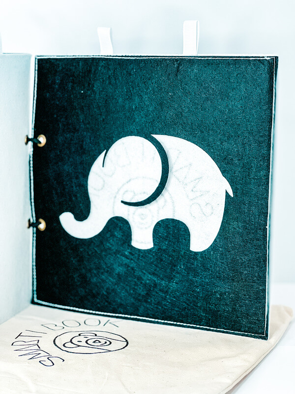 ELEFANT: Das Büchlein endet mit einem Elefanten, bei dem das Kind von dem Kontrast und der Möglichkeit, das Innere zu fühlen, angezogen wird.